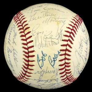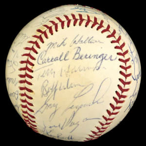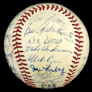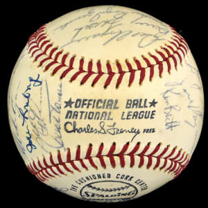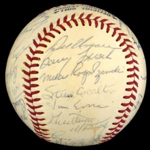A winning nucleus was forming, when the 1973 Philadelphia Phillies signed this ONL/Feeney baseball. When baseball began divisional play in 1969, the Phillies spent the first five seasons battling the expansion Montreal Expos for last place in the newly formed NL East. Rick Wise was swapped for Steve Carlton after the 1971 season, and the farm system started bearing choice fruits. By 1974, the Fightin' Phils were in contention, thanks to key players who have contributed signatures to this 1973 Phillies period signed ball.
