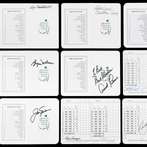 Tee up the winning bid for this Masters Tournament winner signed Augusta National Golf Club scorecard partial set (29/56). These elite level golfers earned the right to don the green jacket, ensuring their place in golf's history. Signature quality is first rate throughout this collection, averaging ("9" to "10") potency, and the cards are bright and clean.