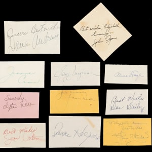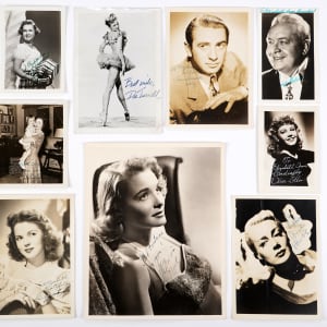 Size ranges from 1 1/2 x 3 to 2 1/2 x 4. Dana Andrews, Susan Hayward, Olivia DeHavilland, Dan Dailey, Jeanne Crain, Jane Wyman, Alice Faye, Jame Mason, Jean Peters, Clifton Webb.