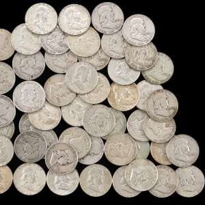 Rounding out this selection, are (50) 1951-1963 Franklin half dollars ranging (FN to MS). A fair number of these coins bear mint marks.