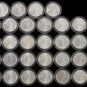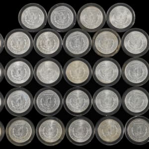 Behold a bunch of beauties with this selection of thirty-two 1878-1921 Morgan silver dollars. As popular as it gets in the coin-collecting world, these better grade dollar coins are very pleasing, ranging AU50 to MS63. A good number report in mint state, and all show nice luster. Featured dates are: 1878-S, 1880, 1880-S, 1881, 1881-O, 1881-S, 1882, 1882-O, 1882-S (2), 1883, 1883-O, 1884-O, 1885, 1885-O, 1886, 1887, 1888 (2), 1889, 1890, 1896, 1897, 1898, 1898-O, 1899-O, 1900 (2), 1901-O, 1902-O, 1904-O, 1921.