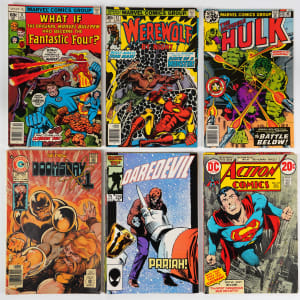 In the 1970s, Marvel was transitioning from their classic era of the 60s, adding new characters and new art talent to their stable of greats, and a loosening in the Comics Code allowed them to add monster titles, as well. During this time, young artists like George Perez, Jim Starlin, Walt Simonson, and John Byrne began their careers. Mostly from the 1970s, this treasure trove includes the above artists, many key storylines, as well as a few Jack Kirby gems from the 1960s. There are (239) books in this great reading collection. They have some wear, but most of the insides retain some whiteness. They are about half (VG-FN to FN) and half (GD-VG to VG). Some lesser are noted.