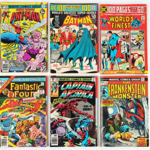 Tour the comic book realm in style, with this beefy selection of (200+) comic books. Dating from the 1960s-1970s, these Silver and Bronze Age issues were published by Marvel, DC, Charlton, Archie, Gold Key, Charlton, Harvey, and others. Condition ranges far and wide, however many are pleasing examples presenting as Fine or better. Headlining this diverse offering, is a partial run of the first Ms. Marvel series, and many other popular characters are in the mix, such as The Avengers, Spider-Man, Batman, Archie, Captain America, and Shazam.