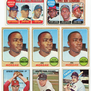1968 Topps: 393 cards, average VG, with #3 Clemente/Alou LL (VG), #100 Gibson (VG-EX), three #144 Morgan (two VG, one GD);
