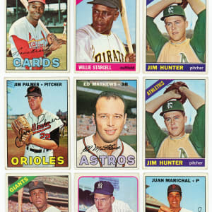 1966 Topps: 733 cards, average GD, with to #30 Rose (both GD), two #36 Hunter (both VG), #99 Stargell/Clendenon (VG), #110 Banks (FR), #120 Killebrew (GD), #125 Brock (GD), #126 Palmer RC (VG), #132 Cepeda (VG), #255 Stargell (VG), #310 F. Robinson (VG-EX), #390 B. Robinson (GD);