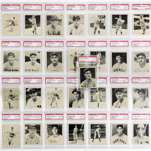 Straight 8s! Each graded NM-MT 8 by PSA with no qualifiers. From baseball's "centennial" arrives this elite collection of 29 different 1939 Play Ball high-grade singles. Includes: #10 De Shong, #11 Rizzo, #14 Tabor, #17 Dickman, #18 Danning, #21 Leonard, #22 Walters, #23 Whitehead, #29 Wilson, #33 Young, #34 Demaree, #36 McCormick, #37 V. Davis, #41 Warneke, #42 Jorgens, #45 May, #47 Lewis, #49 E. Miller, #68 Sington, #69 Fletcher, #70 Frankhouse, #75 Bordagaray, #76 Rosen, #83 Suhr, #64 Newome, #91 Knott, #99 Berger, #100 Myer and #104 Bridges.