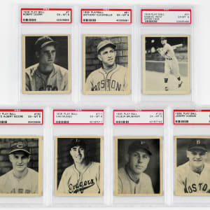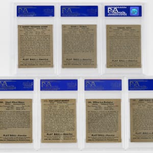 Each graded EX-MT 6 by PSA. Crisp selection of (7) 1939 Play Ball singles with a Hall of Famer and pair of high numbers. Includes: #7 Doerr, #31 West (Upper Case), #61 Cuccinello, #107 Vosmik, #111 Mungo, #130 Brubaker and #162 L. Moore.
