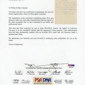 A review of the Yankees 1933 schedule shows them in Detroit for a four-game set, from 6/25-6/28. On the day he wrote the letter, Sewell went 1/4, with a single, a walk, and two runs scored, in a 10-7 Yankees win. Despite a horizontal compacting fold at center, and staple holes at top, the letter remains attractive, with written content on both sides. Sewell has signed on the back in conclusion, and his signature shows ("8") strength, nearly a hundred years after the fact.