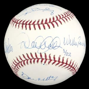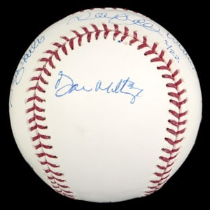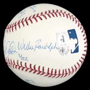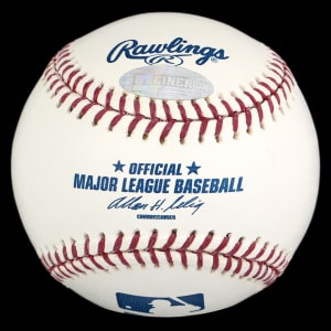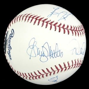 Salute the New York Yankees team leaders, when you bring home this baseball signed by (5) of their captains. It's considered quite an honor to be named captain of the Yankees, and these inspirational stars earned the title through their on-field excellence, their leadership qualities, and their devotion to the game. Located on a snow white OML/Selig baseball, the (5) signatures average ("8" to "9") potency, with Derek Jeter Don Mattingly, Ron Guidry, Willie Randolph, and Graig Nettles. Written above Guidry's signature on the north panel, is the title "Yankees Captains", and the ball is limited-edition numbered "1/22" to the right of Jeter's sweet spot signature.