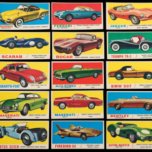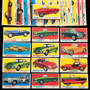 Non-sport collectors get revved-up for this 1961 Topps Sports Cars collection (77), with a partial set (44/66), and (33) duplicates. Sized at 4-3/4" x 2-1/2", these large format "tall boy" cards are departure from Topps typical offerings, making them condition sensitive. As the set title indicates, these high octane cards depict a variety of sporty automobiles, such as the Maserati, Alfa-Romeo, Ferrari, Jaguar, and many other classics of the open road. Truly a handsome accumulation, this collection ranges favorably as (80% EX to EX-MT+, 20% VG to VG-EX), with deference to (1) lesser example.