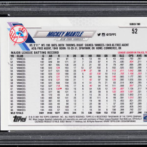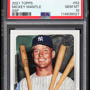 Graded GEM MINT 10 by PSA. Be quick to pick up this Mick! Presented is a 2021 Topps #52 super shortprint picturing New York Yankees Hall of Famer Mickey Mantle. Only 28 total copies of this modern insert have been evaluated by the grading service.