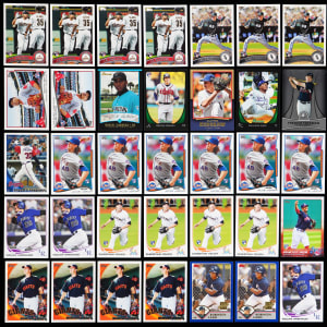 Power up your inventory with the offered 2000-present baseball singles collection of (9,500+) cards featuring hundreds of Hall of Famers, numerous superstars, inserts/parallels and key rookies. This mostly Topps-themed assortment is largely pieced together through player groups of varying sizes. Highlights include: (2) 2000 Topps Traded #40 M. Cabrera RC, 2001 Bowman #299 M. Cabrera RC, (2) 2004 Topps #324 Y. Molina RC, 2005 Topps #677 Verlander RC, 2008 Topps Update: (2) #240 Kershaw RC, (2) #280 Scherzer RC; 2010 Bowman Platinum #13 Freeman RC, (6) 2010 Topps #2 Posey RC, 2010 Topps Pro Debut #243 Freeman RC, 2011 Bowman #205 Freeman RC, 2011 Topps: (10) #65 Sale RC, (6) #145 Freeman RC; 2011 Topps Update: (4) #47 Goldschmidt RC, (2) #132 Altuve RC, (5) #186 J. Martinez RC; 2013 Topps Update: (3) #259 Arenado RC, (5) #290 Yelich RC; 2014 Bowman Prospects #109 Betts RC, 2014 Topps Update: (2) #26 Betts RC, (7) #50 deGrom RC, (4) #301 Betts RC; (2) 2015 Topps Update #82 Lindor RC, 2018 Topps Update: #250 Acuna Jr. RC and #300 Soto RC.