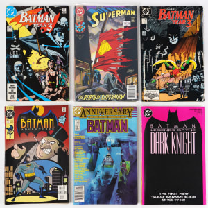 DC’s top guns show up ready for action, with this 1980s-1990s Batman and Superman comic book collection (300+). Plenty of great stories made their way into these Copper and Modern Age comics, such as the Batman Year One arc by Frank Miller, the debut of Timothy Drake, and the death of Superman. Condition ranges (90% VF to NM+, 10% slightly lesser).