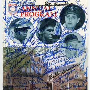 Hall of Fame alumni gathered in great number for the 1985 induction ceremony at Cooperstown. Held on the final weekend of July, this prestigious event honored the Class of 1985, Lou Brock, "Arky" Vaughn, Hoyt Wilhelm, and Enos Slaughter. This ceremony yielded a bumper crop of prized autographs for a very fortunate attendee, who collected (60+) signatures on the front of the offered 1985 Hall of Fame program. The program reports in solid condition, and the signatures average ("9" to "10") strength.