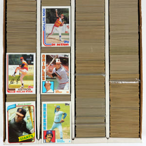 1982 Topps: (2,300+ cards, includes one PSA graded) with (4) #21 Ripken RC (one PSA NM-MT 8, one VG-EX, (2) low-grade), (11) #435 Yount;