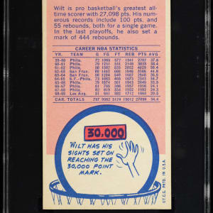 Top 4%! Graded NM+ 7.5 by SGC. Sharp 1969-1970 Topps Basketball #1 Wilt Chamberlain. This record-breaking Los Angeles Lakers Hall of Famer showcases well-formed corners, bright white edges and radiant surface colors. The reverse which touts Chamberlain's scoring record is crystal clear.