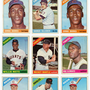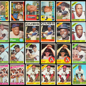 1966 Topps: (600+ cards, average FR to GD) with #1 Mays (GD), (2) #30 Rose (one FR, one PR, writing), #50 Mantle (PR), (2) #90 Aparicio (VG, GD), (2) #99 Stargell/Clendenon (both GD), (2) #110 Banks (GD, FR), #120 Killebrew (VG), #125 Brock (GD), #126 Palmer RC (FR), (2) #132 Cepeda (VG, PR), #160 Ford (FR), #195 Morgan (GD), #288 Sutton RC (GD, miscut), #300 Clemente (PR), (2) #310 F. Robinson (GD, FR), (3) #320 Gibson (GD, (2) FR), #380 B. Robinson (FR);