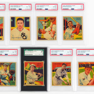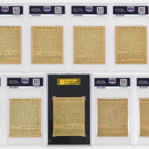 Boost your pre-war standing with these nine 1934-1936 Diamond Stars graded cards. Includes: PSA VG-EX 4: (5 cards) with #40 Ryan, #43 Lyons, #45 J. White, #48 R. Ferrell, #51 Whitehead; SGC VG/EX 4: #53 Melillo; PSA VG+ 3.5: #26 P. Martin; PSA GOOD+ 2.5: #69 Grace and PSA GOOD 2: #71 Bluege.