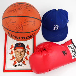 Many big names from baseball, football, basketball and boxing are represented on these (7) signed items.