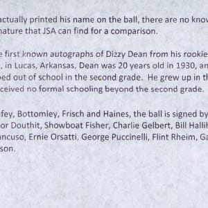 Also noted is the name "Dizzy" Dean, hand-printed in all capital letters on the west panel. Due to a lack of comparable printed examples, this signature in not authenticated. Dean was a late season call-up in 1930, and got a complete game win in his MLB debut on 9/20/30.