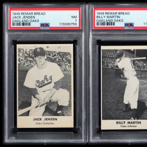 Each graded NM 7 by PSA. Key pair of 1949 Remar Bread Oakland Oaks singles. The following Pacific Coast League stars are present: 1.) Billy Martin and 2.) Jackie Jensen.