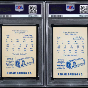 Lot # 371: 1949 Remar Bread Oakland Oaks PSA NM 7 Graded Pair with Billy Martin & Jackie Jensen