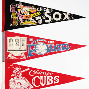 “My Kind of Town” sang Frank Sinatra, because every town wishes they had two baseball teams. This group of (6) pennants includes (4) from the Chicago White Sox and (2) from the Chicago Cubs. Condition averages Excellent with the usual pinholes.