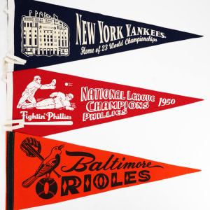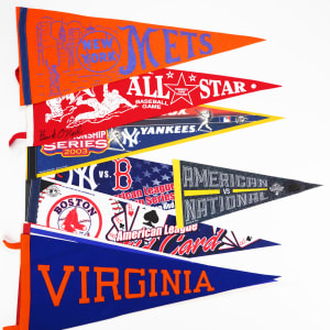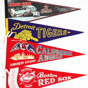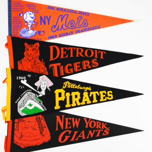 What kid didn’t have a pennant on their wall? A simple felt pennant was the classic way for a fan to support their team. The pennants in this group come from the estate of Mike Cubbage.
