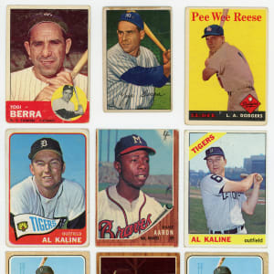 1965 Topps: (49 cards, average GD to VG) with #50 Marichal (GD), #120 F. Robinson (VG), #130 Kaline (FR), #205 Spahn (FR, reverse adhesive residue), #377 Stargell (GD);