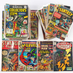 Heroes and monsters vie for your attention, with this 1962-1969 Marvel comic book treasure chest bundle (60). This Silver Age and early Bronze Age assortment packs plenty of collecting muscle, with early Fantastic Four issues, classic horror titles, and a first appearance favorite. There’s also Marvel’s first “one-shot”, and groups of anthologies starring front rank super-heroes. Condition ranges (75% VG to FN+, 20% FR-GD to GD-VG, 5% PR to FR).