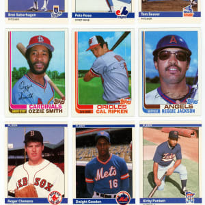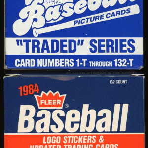 Keynote pair of 1982 Topps Traded and 1984 Fleer Update complete sets. Each 132-card supplemental edition grades (NM to Mint) condition and are housed in relatively crisp factory boxes. Highlights include: 1982 Topps Traded set: #47T R. Jackson (NM-MT), #98T Ripken RC (NM), #109T O. Smith RC (NM); 1984 Fleer Update set: #U-27 Clemens RC (NM-MT), #U-43 Gooden RC (NM-MT), #U-93 Puckett RC (NM-MT), #U-102 Rose (NM-MT), #U-103 Saberhagen RC (NM-MT) and #U-106 Seaver (NM).