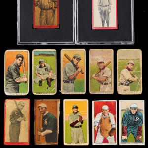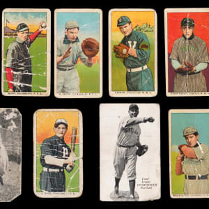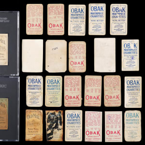 1910 T212-2 Obak: (8 cards, all PR with 175 Subjects backs) with Agnew, Briswalter (front paper loss), Capron (reverse paper loss), Hunt, Pennington (reverse paper loss), Perry, H. Smith, Spiesman (punch hole);
