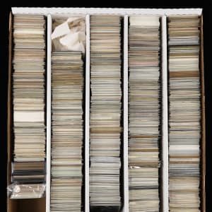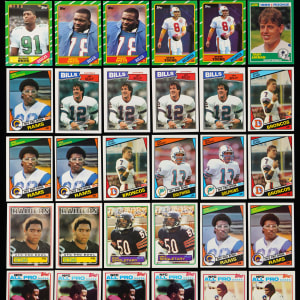 Don't punt on the opportunity to reel in this large 1980s-present Football Hall of Fame collection of (4,000+) cards. An abundant supply of (100+) rookies are found in this high-grade selection that is partially sorted by player. Key rookies include: Aikman, (2) M. Allen, (5) Bettis, (2) T. Brown, (14) C. Carter, (5) Dickerson, (3) Elway, (9) Faulk, (5) M. Harrison, (5) Irvin, (5) J. Kelly, R. Lewis, (4) Lott, (2) Marino, C. Martin, (2) Moon, (3) Moss, (15) T. Owens, (2) B. Sanders, D. Sanders, Seau, (2) Singletary, (3) B. Smith, (2) L. Taylor, (2) D. Thomas, (6) T. Thomas, Re. White and (5) S. Young. Quantities of Hall of Famers including (150+) Elway, (250+) Marino, (250+) Montana, (350+) Rice and (200+) E. Smith are also present. The size/weight of this item requires that there will be an additional shipping charge for this lot.