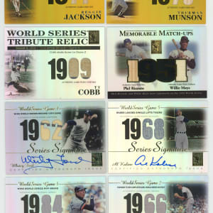 2003 Topps Tribute World Series Tribute Relics: (5 cards) with Cepeda (#/50), Cobb, R. Jackson (#/25), Munson (#/25), Yastrzemski;