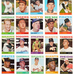 Spotlighted is a 1964 Topps partial set of (449/587) cards with several Hall of Famers and stars. This sparkling clean assembly generally presents in the (EX to EX-MT) range with some better or lesser. The (47) tougher high numbers generally present similarly. Highlights include: #35 Mathews (EX), #120 Drysdale (EX-MT), #155 Snider (EX-MT), #210 Yastrzemski (EX), #225 Maris (EX), #230 B. Robinson (EX-MT), #244 LaRussa RC (EX), #250 Kaline (EX-MT), #260 F. Robinson (EX), #280 Marichal (EX), #342 Stargell (VG-EX), #350 McCovey (VG-EX), #380 Ford (EX), #400 Spahn (EX), #460 Gibson (EX), #468 Perry (EX), #540 Aparicio (VG-EX), #543 Uecker (VG-EX), #550 Hubbs (EX) and #570 Mazeroski (EX).