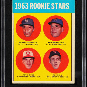 Graded VG+ 3.5 by SGC. Important 1963 Topps #537 Pete Rose rookie high number that has witnessed an uptick in bidding interest following the legend's September 2024 passing. The all-time hit king from the Cincinnati Reds.