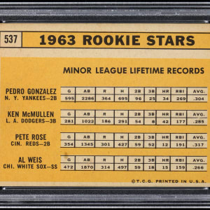Graded GOOD 2 by PSA. "Red Hot" 1963 Topps #537 Rookie Stars high number picturing all-time hit king Pete Rose. With "Charlie Hustle" removed from the "permanently ineligible" list, a variety of promising options are now available to the Cincinnati Reds legend.