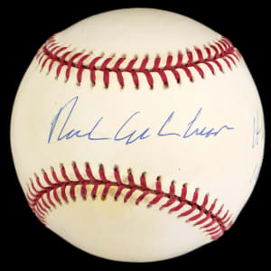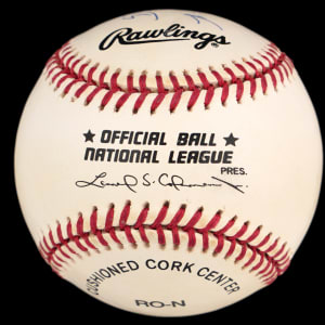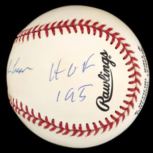 Elect fleet-footed Philadelphia Phillies centerfielder Rich Ashburn to your collection, with this single-signed and inscribed baseball. A lifetime .308 batter, it seems Ashburn was punished for his lack of power, as he had to wait more than thirty years for his election to the Hall of Fame. His 5,803 career putouts in centerfield are the third most all-time, behind only Willie Mays and Tris Speaker, and he led all of baseball with 1,875 hits during the 1950s, a decade filled with great hitters. Located on the sweet spot of a nicely preserved ONL/Coleman baseball, Ashburn's ("9") strength signature is accompanied by the seldom seen inscription "HOF '95", on the east panel. Ashburn was enshrined in the Hall of Fame in 1995, and he passed away in 1997, leaving just a two-year window for this tough inscription.