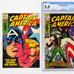 The headliner is #117 with the first appearance of Falcon/Sam Wilson and Redwing, Red Skull appearance, Stan Lee story, Gene Colan and Joe Sinnott art, cover by Colan, Sinnott and John Romita, CGC graded (5.0, Off-White Pages).