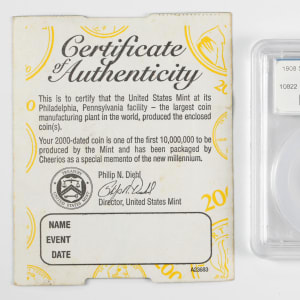 2000 Lincoln Memorial Back cent (GEM BU) in sealed original Cheerios premium package with COA on the back.