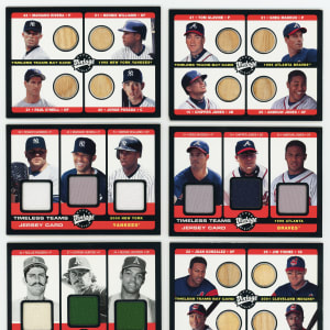 Other Game-Used Partial Sets: 41 cards with twenty-three 2001 Upper Deck Legends of New York: two G. Carter, Herman, two Ryan, Seaver, two Stengel; fifteen 2005 Upper Deck Trilogy: Bagwell, Beltre, Doerr, Mauer, Murray, O. Smith; three 2002 Upper Deck Vintage Timeless Teams Jersey: Clemens/M. Rivera/B. Williams, Fingers/Hunter/R. Jackson, Maddux/C. Jones/A. Jones;