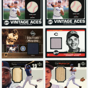 Other Game-Used: 38 cards with Bagwell, Banks, two Boudreau, Cepeda, three Clemens (one #/10, one #/24), Cronin, three Dawson, Fisk, two Griffey Jr. (both 2009 Upper Deck 600), Hodges, R. Jackson, Jenkins, Maddux, Marichal, Mays, Mazeroski, two McCovey, Morgan, Reese, Ripken Jr., Ruth (2005 Upper Deck Hall of Fame #/25), three Seaver (one two-color patch), Slaughter, Wagner (2002 Upper Deck World Series Heroes), Yastrzemski, 2004 SP Legendary Cuts Sutton/Ryan/Carlton/Seaver (#/10).