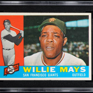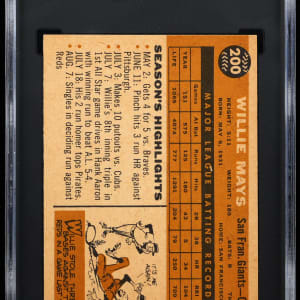 Graded EX/NM+ 6.5 by SGC. Crisp 1960 Topps #200 Willie Mays. This San Francisco Giants Hall of Fame outfielder ranks in the upper 7% of all similar cards judged by the grading service.
