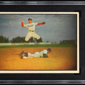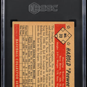 Graded VG 3 by SGC. Rise above the bidding competition for the offered 1953 Bowman Color #33 Pee Wee Reese single. This horizontal jewel portraying the Brooklyn Dodgers Hall of Famer turning two is crease-free and an ideal option for set collectors.