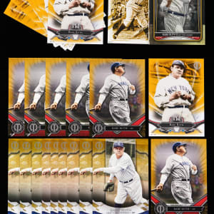 Each serially numbered #/10. The mighty "Bambino" of the New York Yankees is truly "larger than life" with these (42) 2016-2021 Topps product Babe Ruth 5x7 singles. The following near complete production runs are included: (7) 2016 Topps Tribute #25, (6) 2017 Topps Tribute #1, (9) 2019 Topps Tribute #90 (one matches jersey number), (7) 2020 Topps Tribute #90 (one matches jersey number), (8) 2021 Topps #81 (one matches jersey number) and (5) 2021 Topps Update #7 (one matches jersey number).