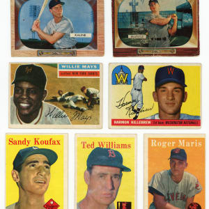 “Golden age” collection of 503 baseball singles from 1952-1959, featuring 33 Hall of Famers including first-ballot legends. Highlights include: