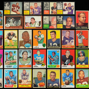 1960 Topps set: (132/132, average VG to VG-EX) with #1 Unitas (GD), #4 Berry (EX), #23 J. Brown (VG), #51 Starr (GD), #54 Hornung (FR), #56 Gregg RC (GD), #74 Gifford (FR), #93 Layne (VG), #113 Tittle (GD);