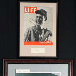 Quadruple down on Ted Williams with this selection of four signature framed displays. This instant “Teddy Ballgame” gallery boasts two limited-edition pieces, along with an oversized photograph, and a cut accompanied by a vintage Life magazine cover from Williams' celebrated 1941 season, when he was the last player to top the .400 batting mark. The displays are attractive and ready for immediate display, and the four Williams signatures are prominently applied, potent examples.
