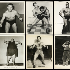 Haystack Calhoun, Cowboy Bob Ellis, Verne Gagne, Primo Carnera (former boxer), “Squasher” Humphrey (750 lbs), Wladek Kowalski, Ernie Ladd (former NFL player), Jim Londos, Antonino Rocca, Buddy Rosen, Sweet Daddy Siki, Gene Stanlee, Lou Thesz (2), Johnny Valentine (6), Carl Von Hess (2), Eric Von Hess, George “Zebra Kid” Bollas (3). Also – French Angel, Red Bastien, Fred Blassie, Dick the Bruiser (3), Al Costello, Man Mountain Dean, Verne Gagne (2), Pepper Gomez, Eddis Graham, Gypsy Joe, Ivan the Terrible, Jesse James, King Kong, Gene Kiniski (2), Baron Leone, Jim Londos, Masked Marvel, Skull Murphy, Pat O’Connor (2), Ivan Rasputin, Ricki Starr, Tor “The Great” Yamoto.