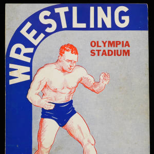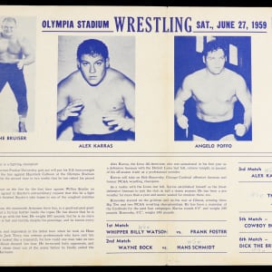 1959-1960 Olympia Stadium Wrestling Programs (5). The foldout programs (8 ½ x 11) are all in EX condition and have identical illustrated covers with different interior content. They are notable because two of the programs feature photos of a young Alex Karras, future NFL Hall of Famer.